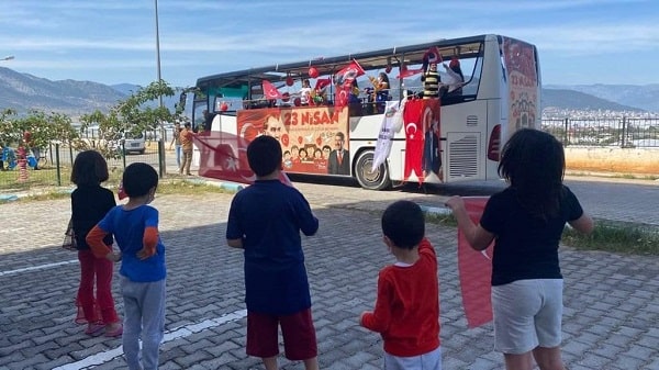 Anamur Belediyesi ise bayraklarla süslü üstü açık otobüs ile şehir merkezinde şarkılar vede marşlar çalarak tur attı.