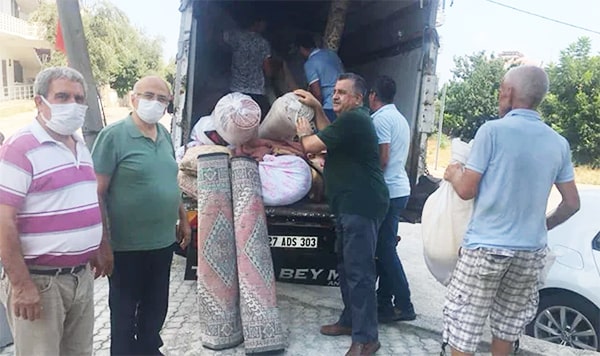 Kahvecioğlu, “Aydıncık’taki orman yangınında evleri yanan, biçare kalmış vatandaşlarımız için başlatmış olduğumuz yardım kampanyamıza Anamur’umuzun her köşesinden vatandaşlarımız samimiyetle duyarlılık göstermiş ve ciddi yardım yapılmış, bir kamyon mutfak malzemesi, halı, yatak, yorgan ve beyaz eşya toplanarak ihtiyaç sahibi vatandaşlarımıza çalışma arkadaşlarımız tarafından teslim edilerek, yaraları sarılmaya çalışılmıştır” dedi.
