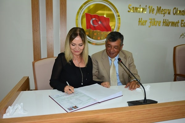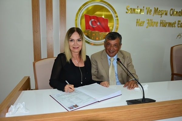 Çiftin Nikah Cüzdanını kendi elleri ile Gelin Elif Yamak’a veren Bozyazı Belediye Başkanı Mustafa Çetinkaya genç çifte ömür boyu mutluluk dilemeyi de ihmal etmedi.