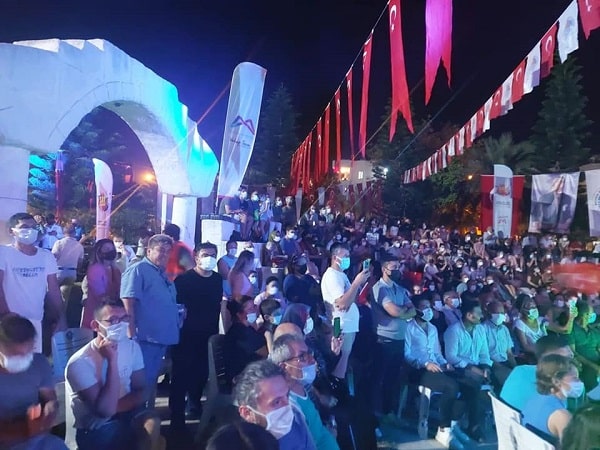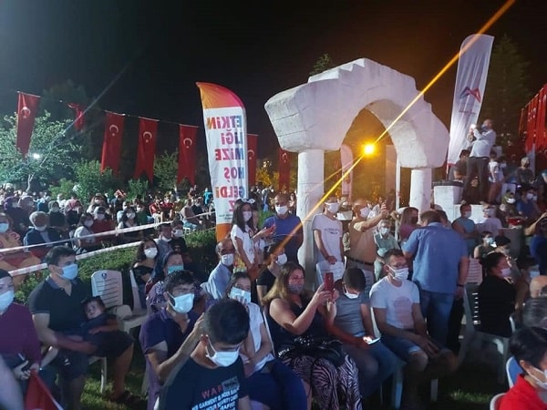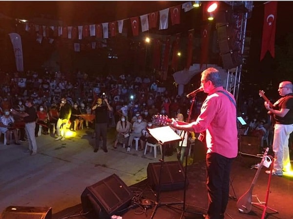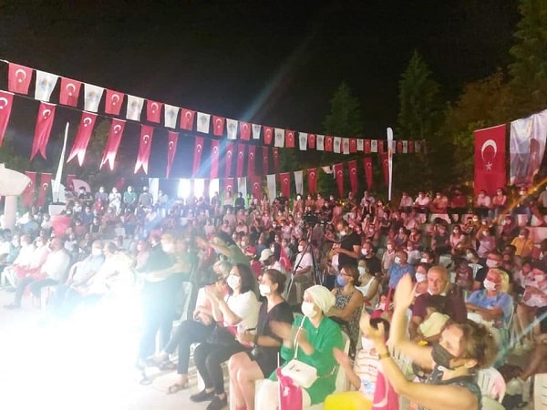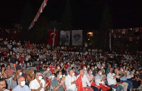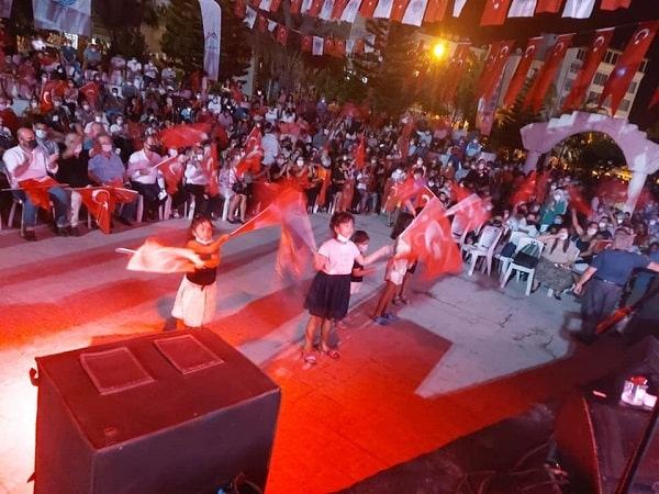 Vatandaşlar, Cavıd-19 salgını nedeni ile hes Kodu kontrolü ve ateş ölçülerek içeriye alındılar. Ellerinde Türk Bayrakları ile gelen katılımcılar, Erdal Güney’in seslendirdiği birbirinden güzel parçaları ile gecenin ilerleyen saatlerine kadar gönüllerince eğlendiler.