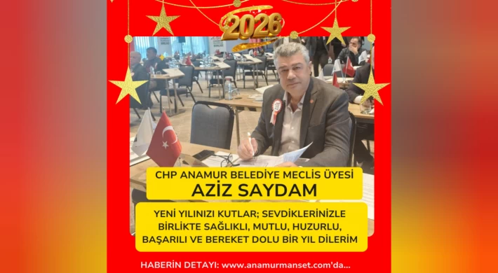 Aziz Saydam mesajında ayrıca, tüm Anamur halkının, mesai arkadaşlarının ve vatandaşların yeni yılını en içten dilekleriyle kutlayarak, 2026 yılının barış, kardeşlik ve bereket dolu bir yıl olmasını temenni etti.