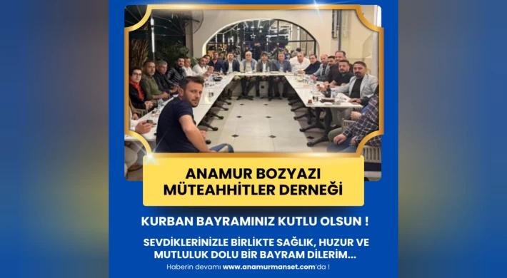 Anamur Bozyazı Müteahhitler Yardımlaşma ve Dayanışma Derneği Başkanı Abdulnasır Aydın ve yönetim kurulu üyeleri, Kurban Bayramı dolayısıyla bir kutlama mesajı yayımladı.