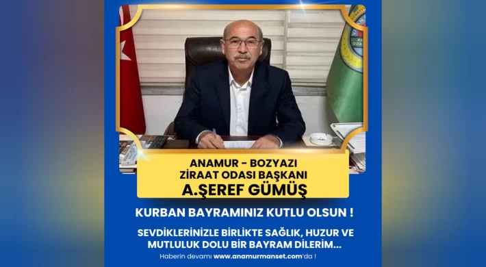 Anamur - Bozyazı Ziraat Odası Başkanı A.Şeref Gümüş, Kurban Bayramı dolayısıyla bir kutlama mesajı yayımladı.