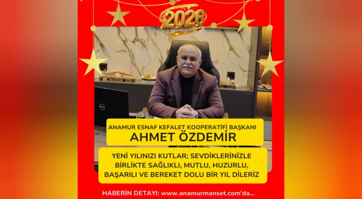 Anamur Esnaf ve Sanatkarlar Kredi ve Kefalet Kooperatifi Başkanı Ahmet Özdemir, yeni yıl dolayısıyla bir kutlama mesajı yayımladı. Başkan Özdemir mesajında, Anamur’da faaliyet gösteren tüm esnaf ve sanatkârların yeni yılını tebrik ederek, 2026 yılının birlik, beraberlik ve dayanışmanın güçlendiği bir yıl olmasını diledi.