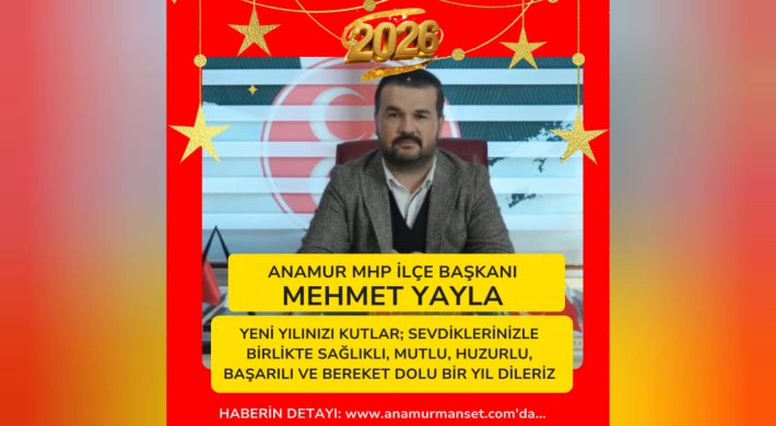 Milliyetçi Hareket Partisi (MHP) Anamur İlçe Başkanı Mehmet Yayla, yeni yıl dolayısıyla bir kutlama mesajı yayımladı. Başkan Yayla mesajında, 2026 yılının Anamur’a, ülkemize ve tüm insanlığa sağlık, huzur ve bereket getirmesini temenni etti.