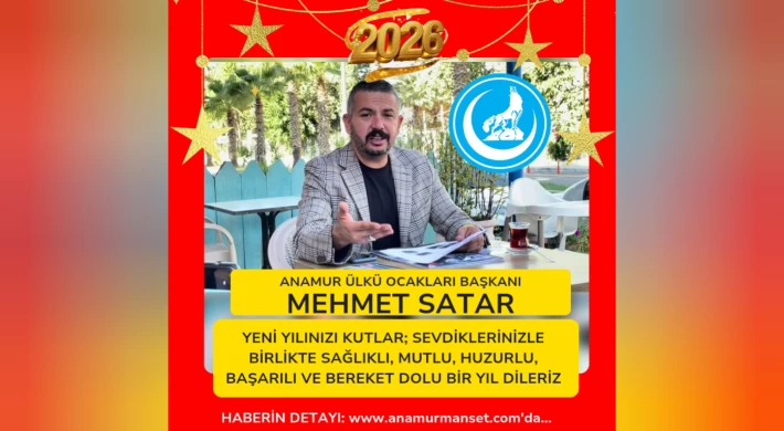 Anamur Ülkü Ocakları Başkanı Mehmet Satar, yeni yıl dolayısıyla bir kutlama mesajı yayımladı. Satar, mesajında 2025 yılını geride bırakırken, 2026 yılına umut ve kararlılıkla girildiğini ifade etti.