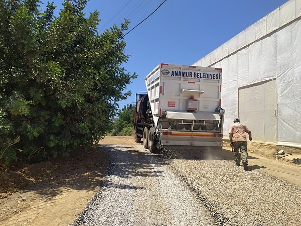 Anamur Belediyesi'nden Ören'e asfalt döküm ve zemin hazırlığı çalışmaları.