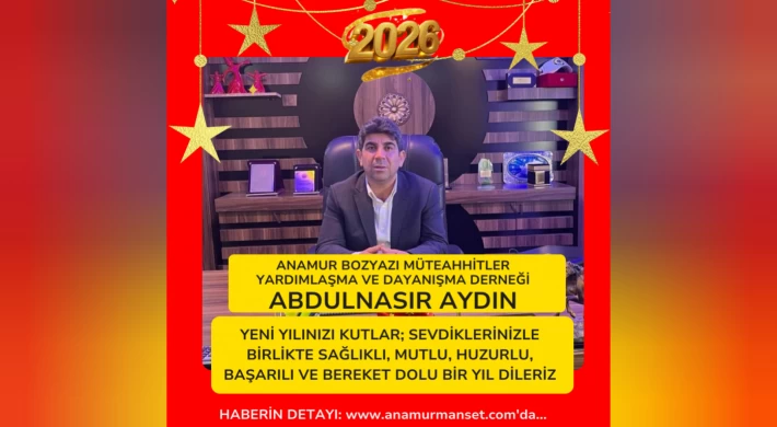 Anamur Bozyazı Müteahhitler Derneği Başkanı Abdulnasır Aydın ve yönetim kurulu, yayımladıkları mesajla yeni yılın sağlık, huzur ve bereket getirmesini temenni etti.