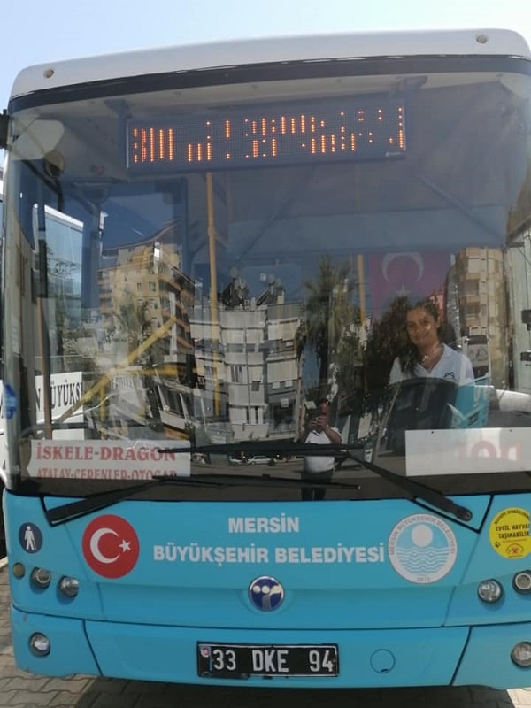 Anamur'un tek bayan otobüs şoförü, Anamur'un gururu oldu.