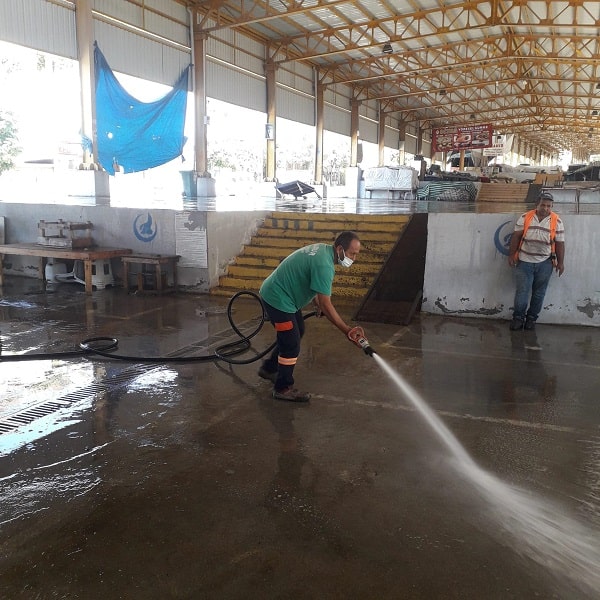 ''Temizlik İşleri Müdürlüğüne bağlı ekiplerimiz, pazar yerinde temizlik ve dezenfektan işlemi gerçekleştirmekte. Vatandaşlarımızın sağlığına her şeyden daha çok önem veriyor, sağlıklı bir yaşam alanı oluşturmaya gayret ediyoruz.Hafta sonu da dahil bizlerin sağlığı için çalışan tüm mesai arkadaşlarıma teşekkür ediyor, daha temiz bir Anamur hayalimize hızla ilerliyoruz.