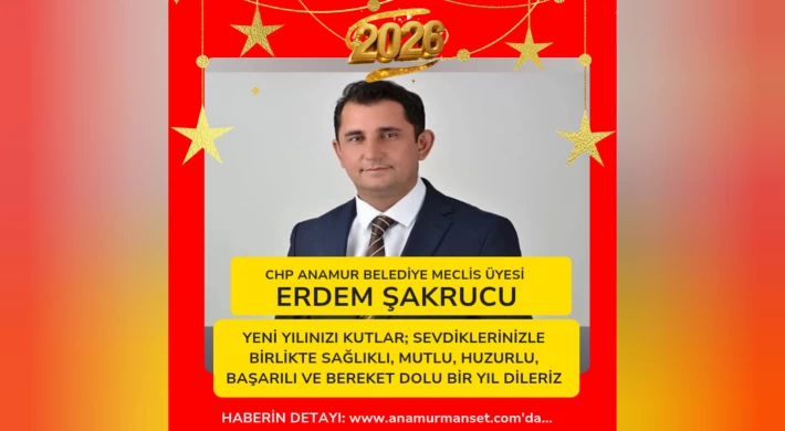 Cumhuriyet Halk Partisi (CHP) Anamur Belediye Meclis Üyesi Erdem Şakrucu, 2026 yılı dolayısıyla bir kutlama mesajı yayımladı. Yeni yılın Anamur’a, Mersin’e ve tüm Türkiye’ye sağlık, huzur ve mutluluk getirmesini temenni eden Şakrucu, toplumsal dayanışmanın önemine dikkat çekti.