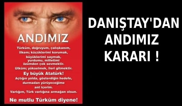 Danıştay andımızın okutulması hakkındaki gerekçeli kararını açıkladı. Kararda öğrenci adının yasalara uygun olduğu belirtilirken, her sabah topluca okutulmasının okul idaresinin takdir yetkisinde bulunduğu kaydedildi.
