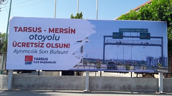 TARSUS CHP’DEN OTOYOL TARSUS-MERSİN BÖLÜMÜNÜN ÜCRETSİZ YAPILMASI İÇİN BİLLBOARDLU ÇAĞRI