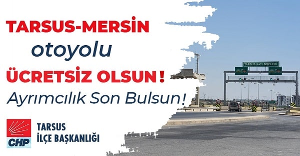 Cumhuriyet Halk Partisi (CHP) Tarsus İlçe Başkanı Av. Ozan Varal, E982 TEM otoyolu Tarsus-Mersin arasındaki bölümünden geçiş parası alınmasının, Tarsus’un üvey evlat olarak görülmesinin bariz örneği olduğunu söyledi.