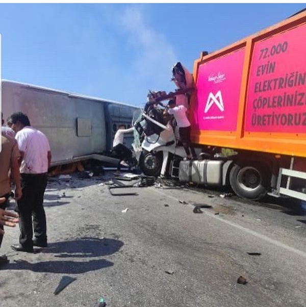 Şırnak'tan Antalya'ya giden 33 EC 647 plakalı yolcu otobüsü ile Mersin Büyükşehir Belediyesine ait 34 GK 1482 plakalı geri dönüşüm malzemesi yüklü tırla çarpıştı.Çarpışma sonucunda 14 kişi yaralandı.Kazada yaralanan Mersin Büyükşehir Belediyesine ait tır şöförü H.E 'nin ise Anamurlu olduğu öğrenildi.Yaralılar en yakın Hastanelere kaldırılarak tedavilerine başlandı.Kaza ile ilğili inceleme başlatıldı.